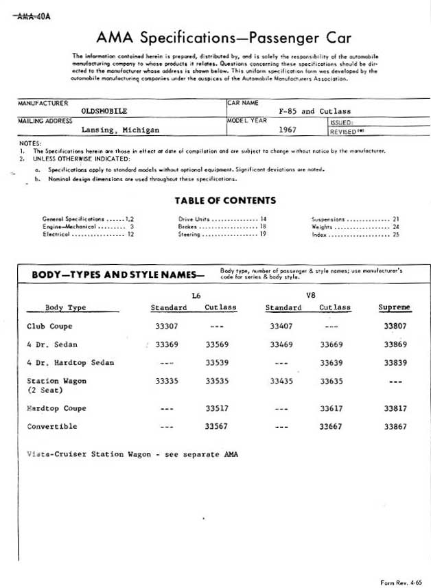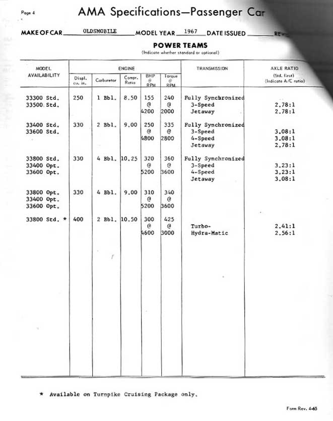 are a few pages out of the AMA spec sheet issued by Oldsmobile. AMA sheets are