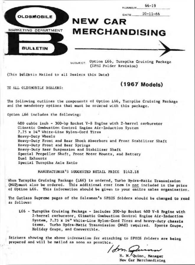 is a dealer bulletin dated Oct 11, 1966 updating the sales people about the