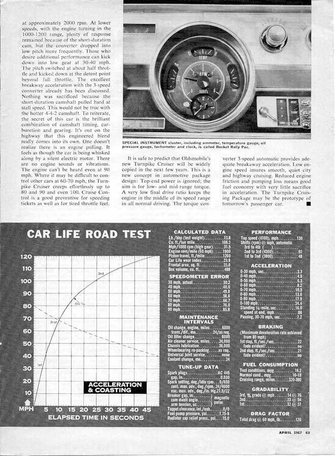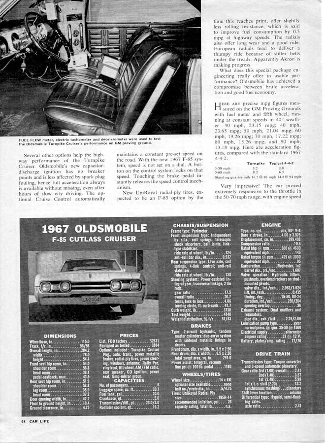 tests rarely evaluated a regular 1967 Cutlass, but there are plenty of tests of